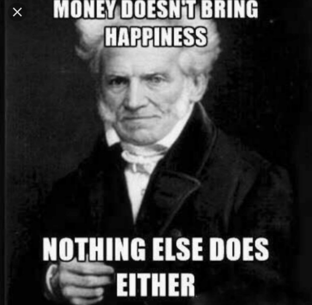 When our desire (the Will) is not satisfied it leads to frustration and suffering.When it is satisfied it leads to boredom and ennui.So we oscillate between boredom and suffering endlessly. And all happiness is just a temporary fulfillment of desire or a pause in deprivation.