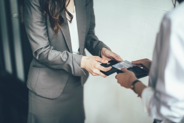 Store the cards separately: Make sure you know where to store your cards so you can take them out immediately. In Japan, most businessmen have card cases which are separate from the wallets. Make sure you know where to put a card holder in your jacket or purse.