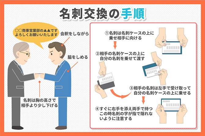 -Give and receive the cards with both hands. Bow at the same time.