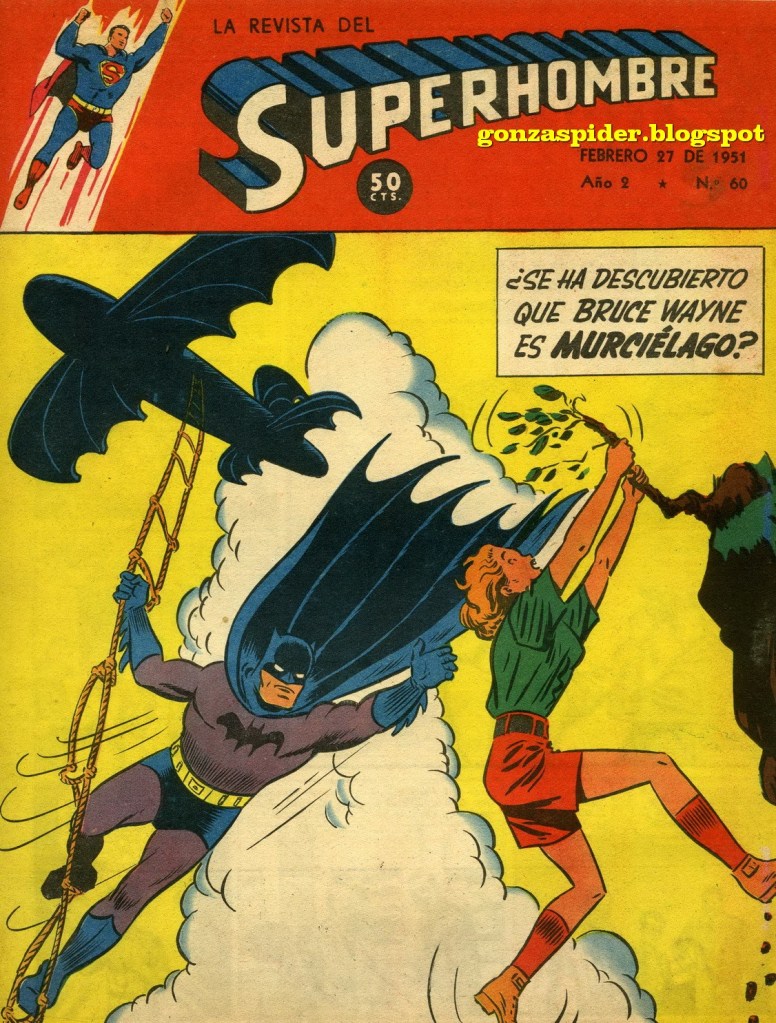 While the Mexican versions were pretty faithful to the American originals, reproducing them in full color, the Argentinian versions which started in January 1950, carried only two pages in color. Of the 24 pages, only the cover and the central spread were in color while the rest were is black and white. Every week, they would start the magazine with a Superman story and follow it up with stories of other famous superheroes like Batman (El hombre murciélago), a phenomenon which started pretty early in the magazine’s history.