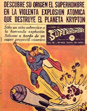 The covers were more or less exclusively dedicated to the Superman story, which were often just a magnified part of a panel from the center spread. The cover would also detail out the plot a bit so that the young reader could get an idea on what to expect from the week’s edition. For example the first one says ” Discover the origin of Superhombre in the violent atomic explosion that destroyed his planet Krypton. Only one child survives this horrendous explosion by getting on cosmic super projectile.”