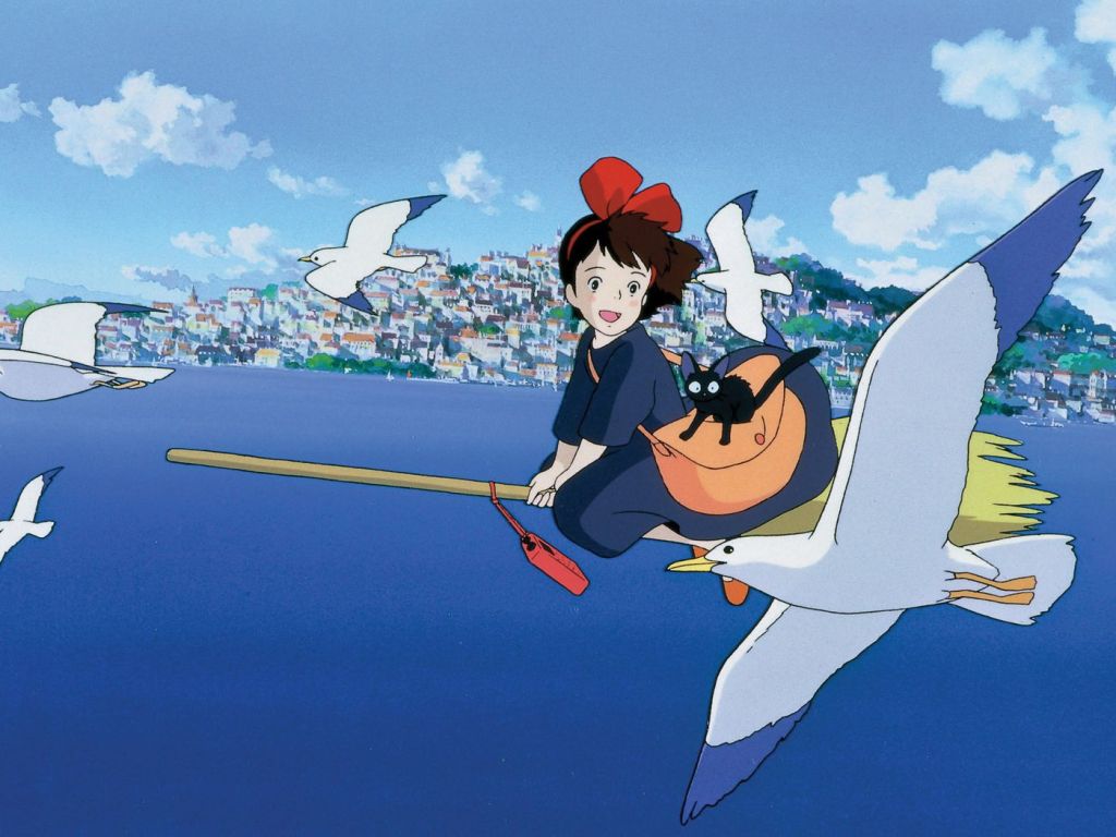 Miyazaki’s third film for Studio Ghibli – Kiki’s Delivery Service-takes inspiration from the first of Kadono’s novels but deviates quite a bit from the stories. While the book is more poetic and episodic in nature, Miyazaki’s film is far more linear and is a feast to the senses. Kiki, is a small witch, who, following the traditions of witchcraft, has to leave home when she turns 13 to try making a living for herself in another town. She needs to use her magic powers and establish herself within a year as a successful witch in her new neighborhood. The young Kiki, embarks on this adventure with her trusted cat Jiji (who talks quite a bit in the novels) and her mother’s broom. In the new town she decides to start a delivery service, given that she can fly quite quickly from one place to another on her broom.