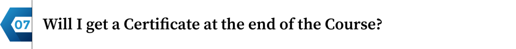 All Courses have an online quiz at the end of the curriculum and the candidates will be given a certificate based on their performance.